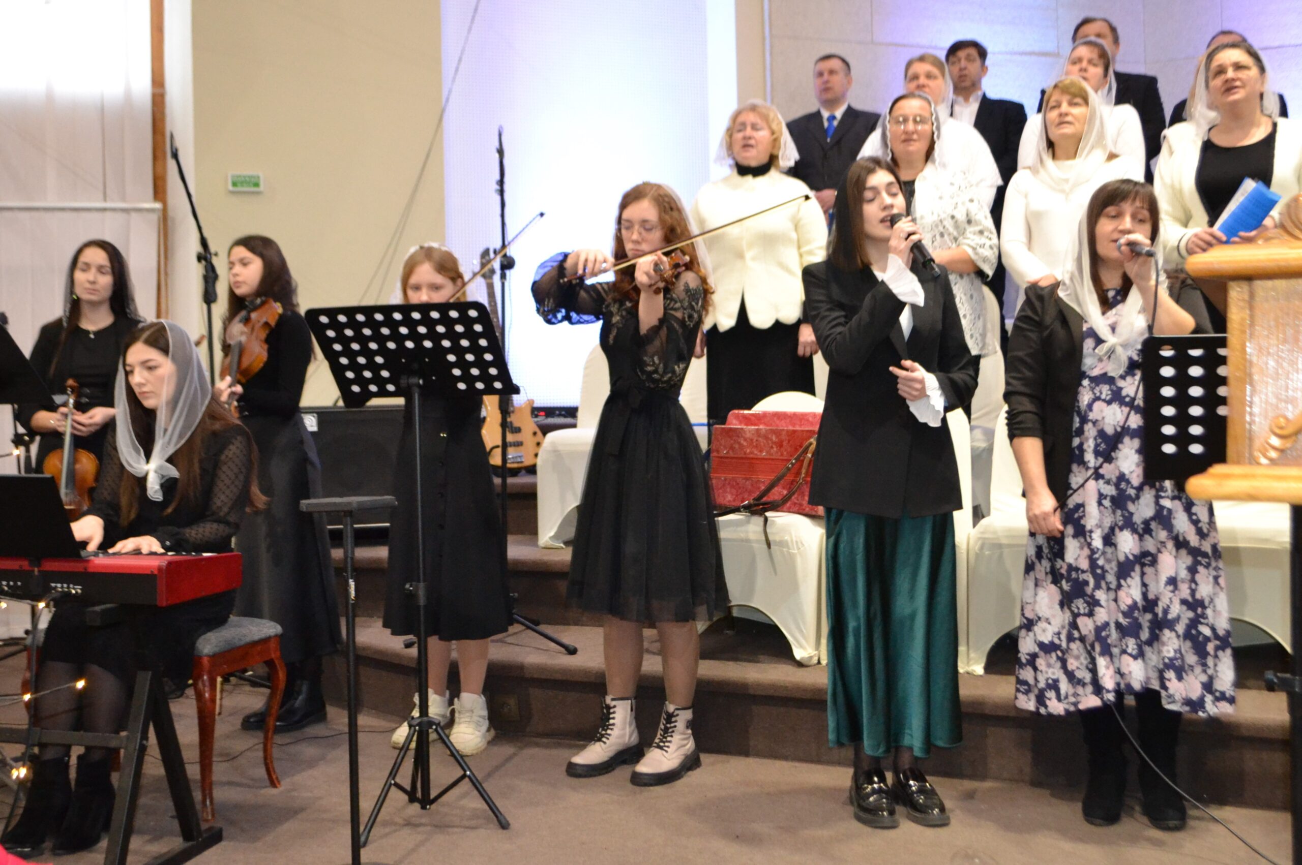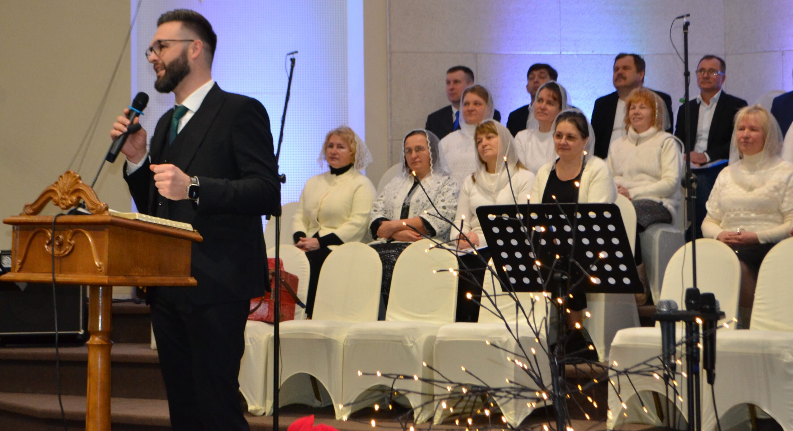 Зі сцени та з екрана звучали теплі слова привітань, виступаючі зичили, щоб Дім молитви був завжди наповнений Божим народом. Віряни у залі та ті, що дивилися трансляцію служіння наживо, спільно молилися за завершення війни та мир для українців.