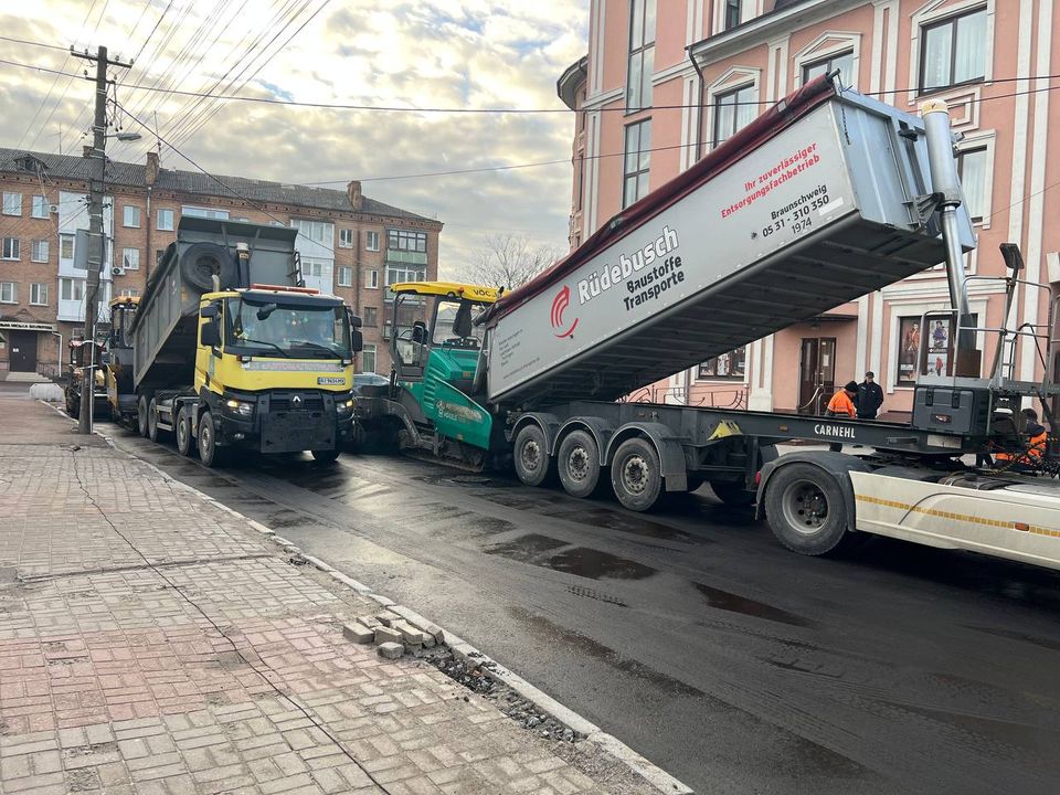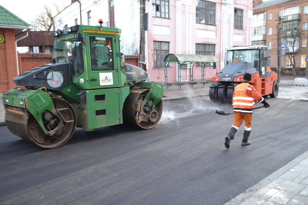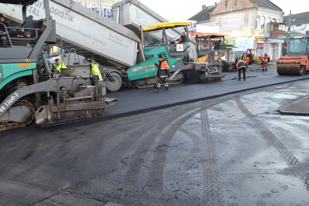 І ось на цьому самому місці працюють три асфальтоукладачі, сім катків, вантажівки й інша техніка: ремонтники приступили до укладання 2-го шару. Його товщина має скласти 5 см. Інтенсивність робіт, кажуть, залежатиме від погодних умов, що ж до поставленого завдання, то до кінця грудня планують заасфальтувати ділянку від перехрестя Шевченка-Вінницької до перехрестя Шевченка-провулку Тихого. Наразі на ділянці, де укладатимуть асфальтобетон ведуться підготовчі роботи.