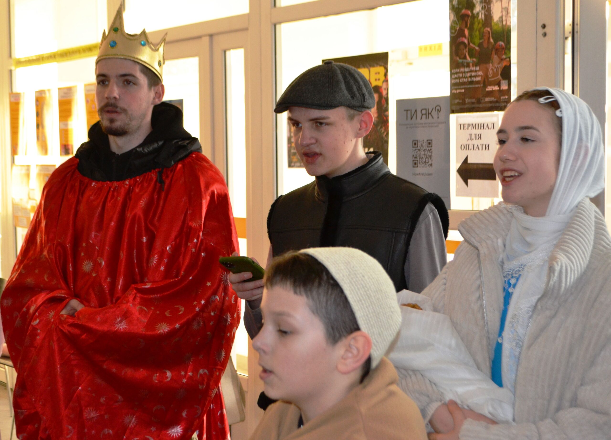Герої різдвяного вертепу сфотографувалися з усіма охочими та отримали смаколики за виконання колядок.