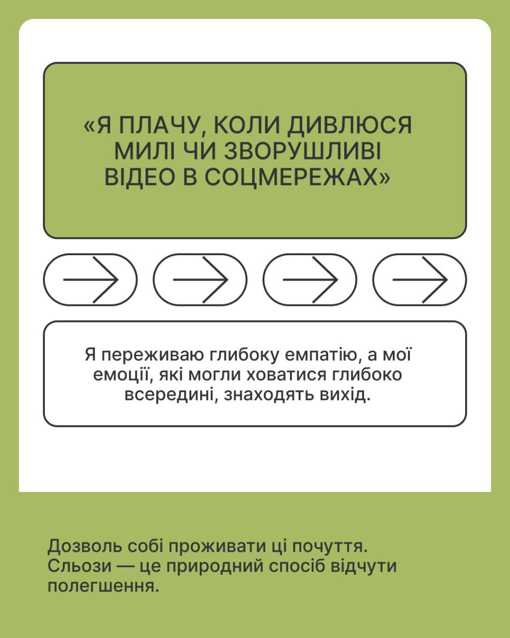 Гортай карусель, щоб дізнатися, як розпізнавати мову своїх емоцій і розуміти, про які потреби вони сигналізують. Та завантажуй путівник з емоційної регуляції на платформі «Ти як?»: https://howareu.com/…/putivnyk-z-emotsiinoi-rehuliatsii…