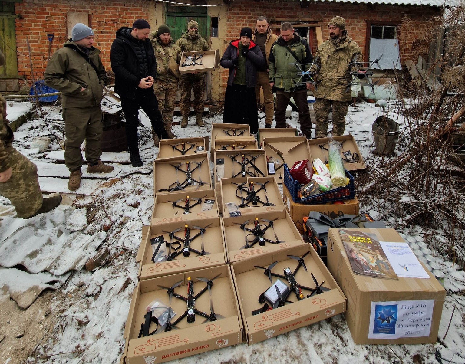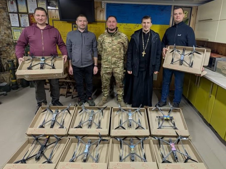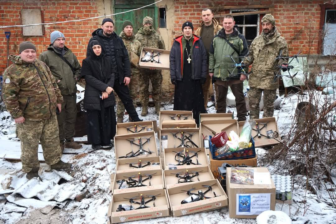 Рекордною за кількістю переданих дронів стала перша у новому році поїздка до українських військових команди у складі секретаря Бердичівської міської ради Богдана Кодяди, протоієрея ПЦУ Костянтина Карпенка, матінки Анастасії, фотографа Валерія Мельникова, майстрів-дронщиків. На потреби Захисників України волонтери передали 71 безпілотний літальний апарат.