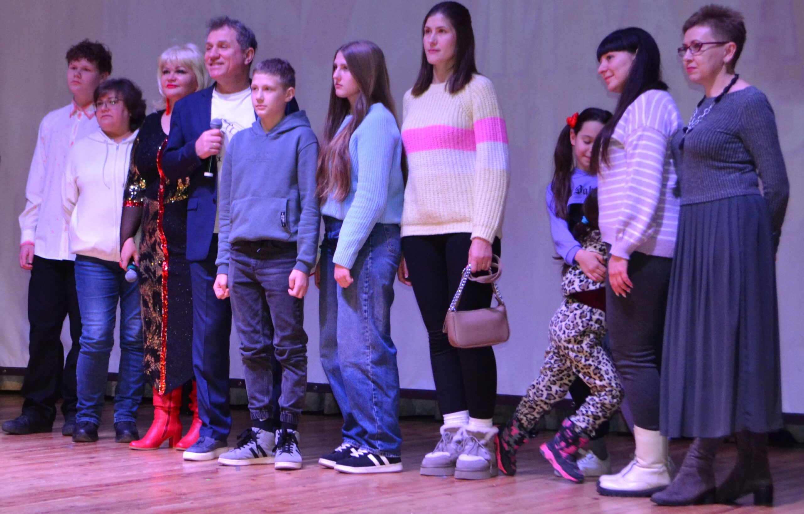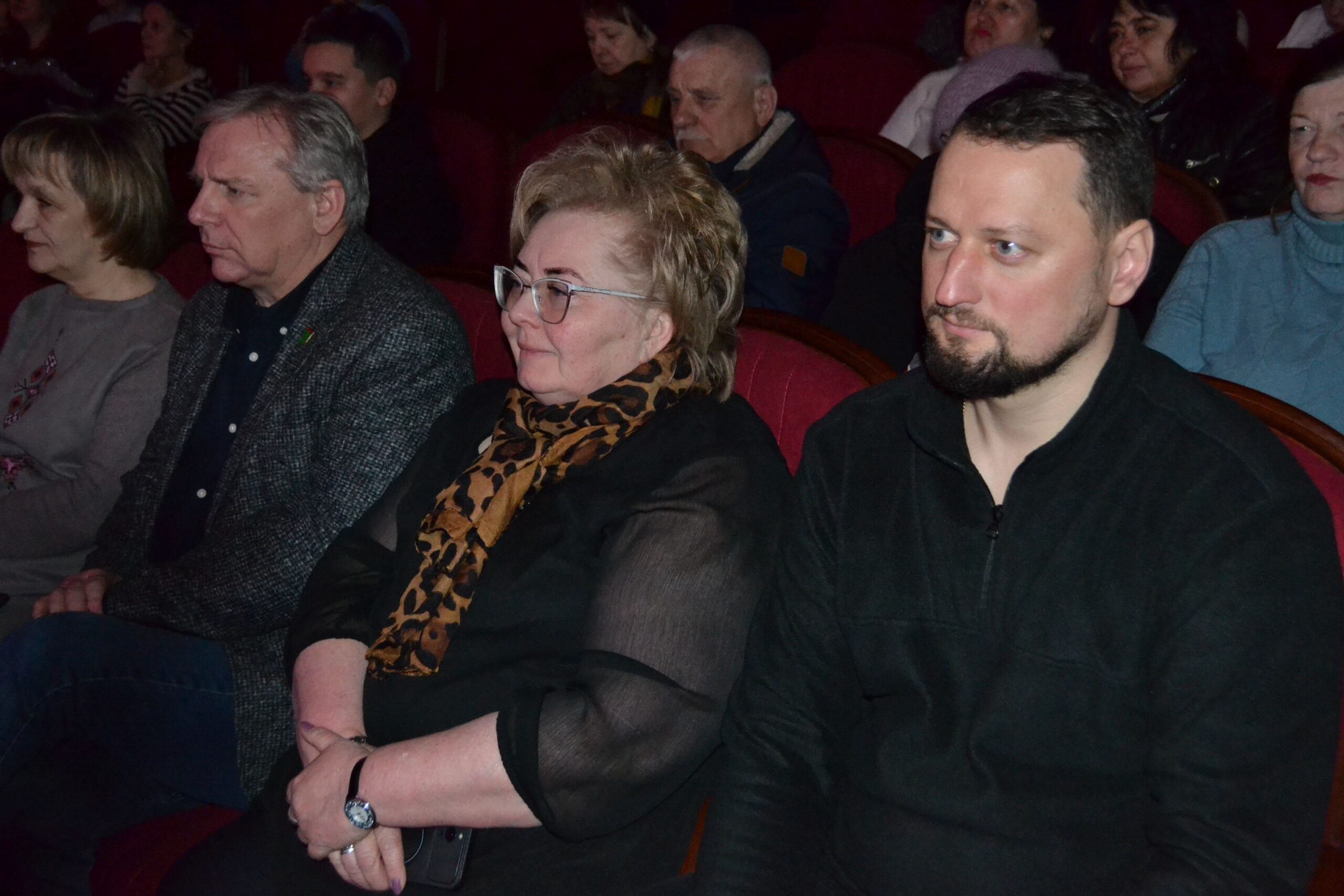 Шість родин, що переїхали з окупованих чи прифронтових територій, ділилися з глядацькою залою болісними спогадами пережитого. Чоловіки з цих сімей наразі обороняють країну, один з них, на превеликий жаль, зник безвісти на Харківському напрямку. Не раз протягом заходу слухачі не могли стримати сліз та стоячи вшановували подвиги Героїв України.