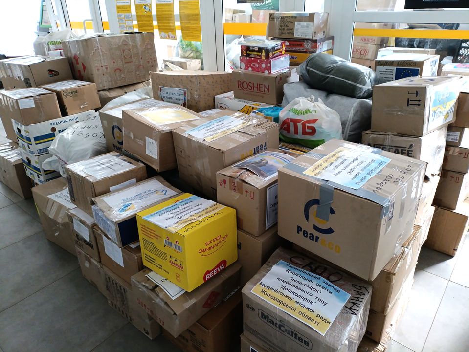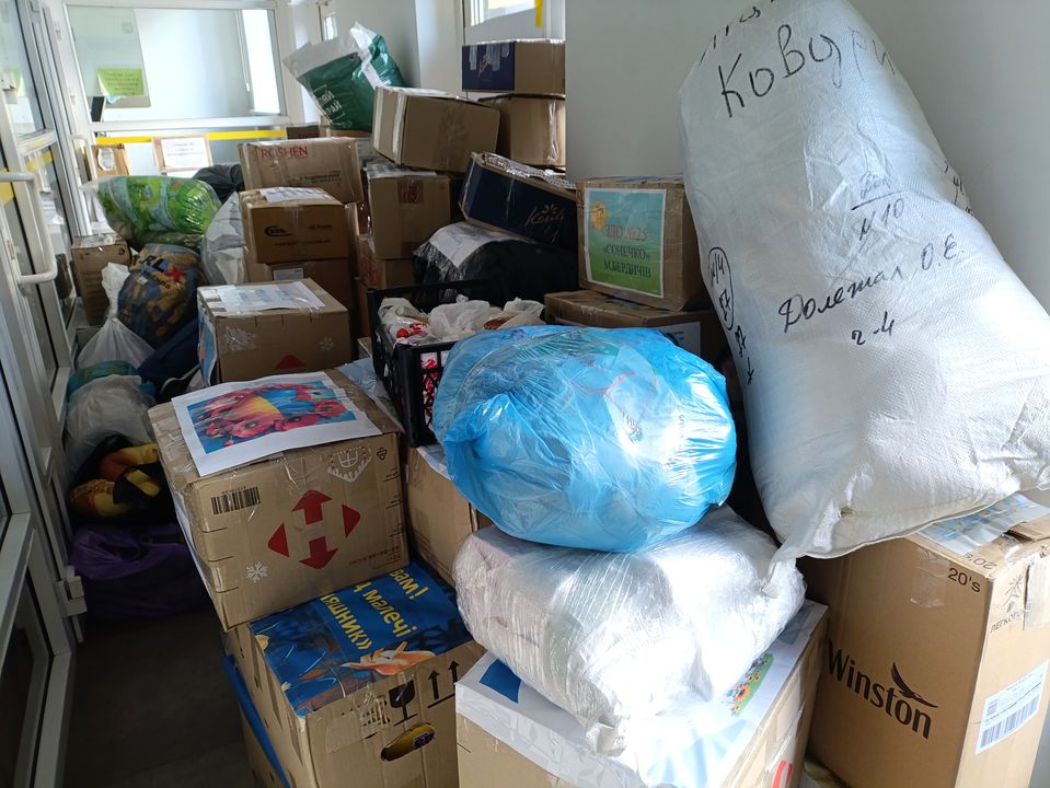 Спочатку коробки з допомогою для українських воїнів планували розташувати в одній з кімнат міської ради. Коли побачили, що все привезене й принесене туди не вміститься, розташували у холі приміщення.