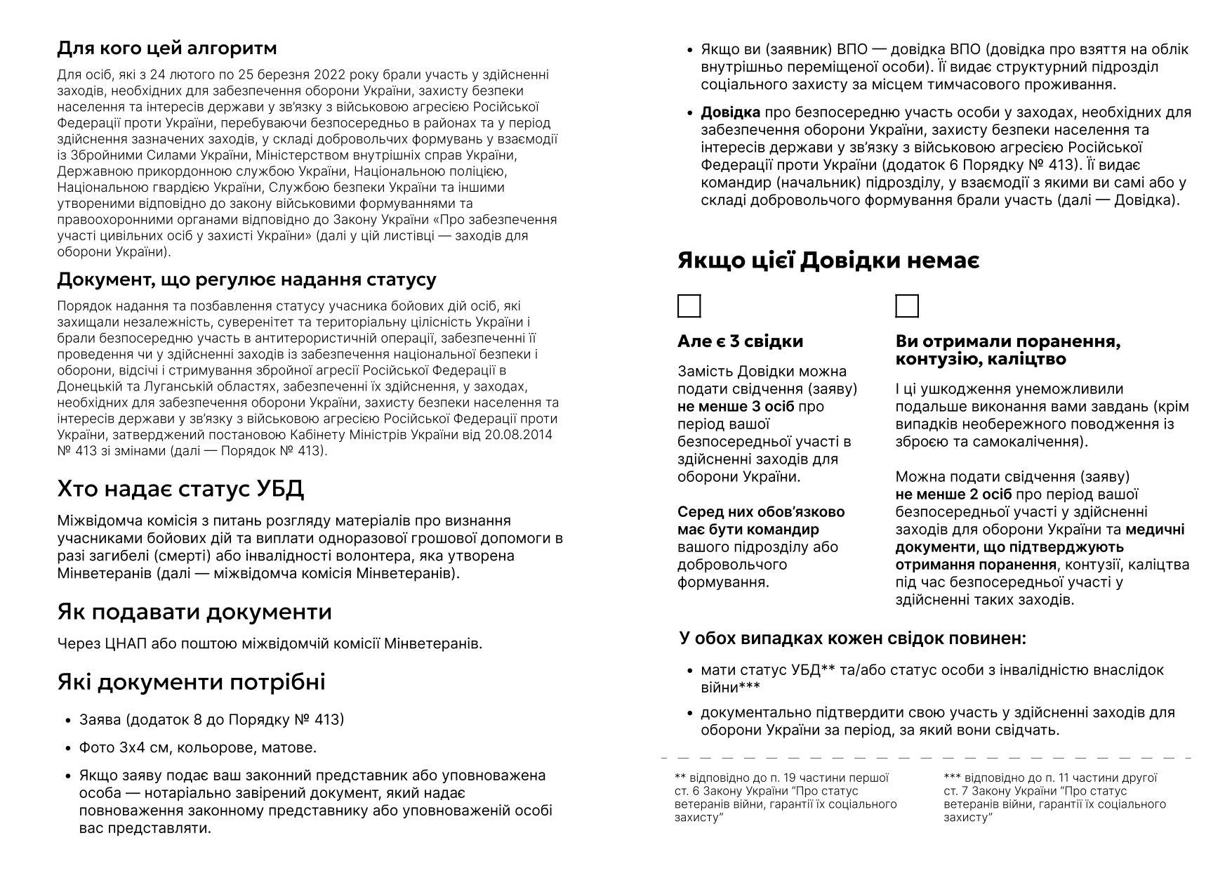 Як отримати статус УБД добровольцям, які в перший місяць повномасштабного вторгнення захищали країну у складі добровольчих та інших військових формувань