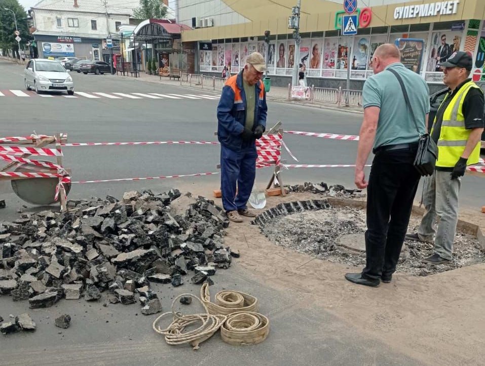 Із метою оперативного реагування на місце виїхали працівники МКП «Бердичівводоканал» спільно з підрядниками. Фахівці вирізають частину асфальту, аби дістатися до перекриття. Далі слідуватимуть демонтаж та встановлення нової бетонної плити.
