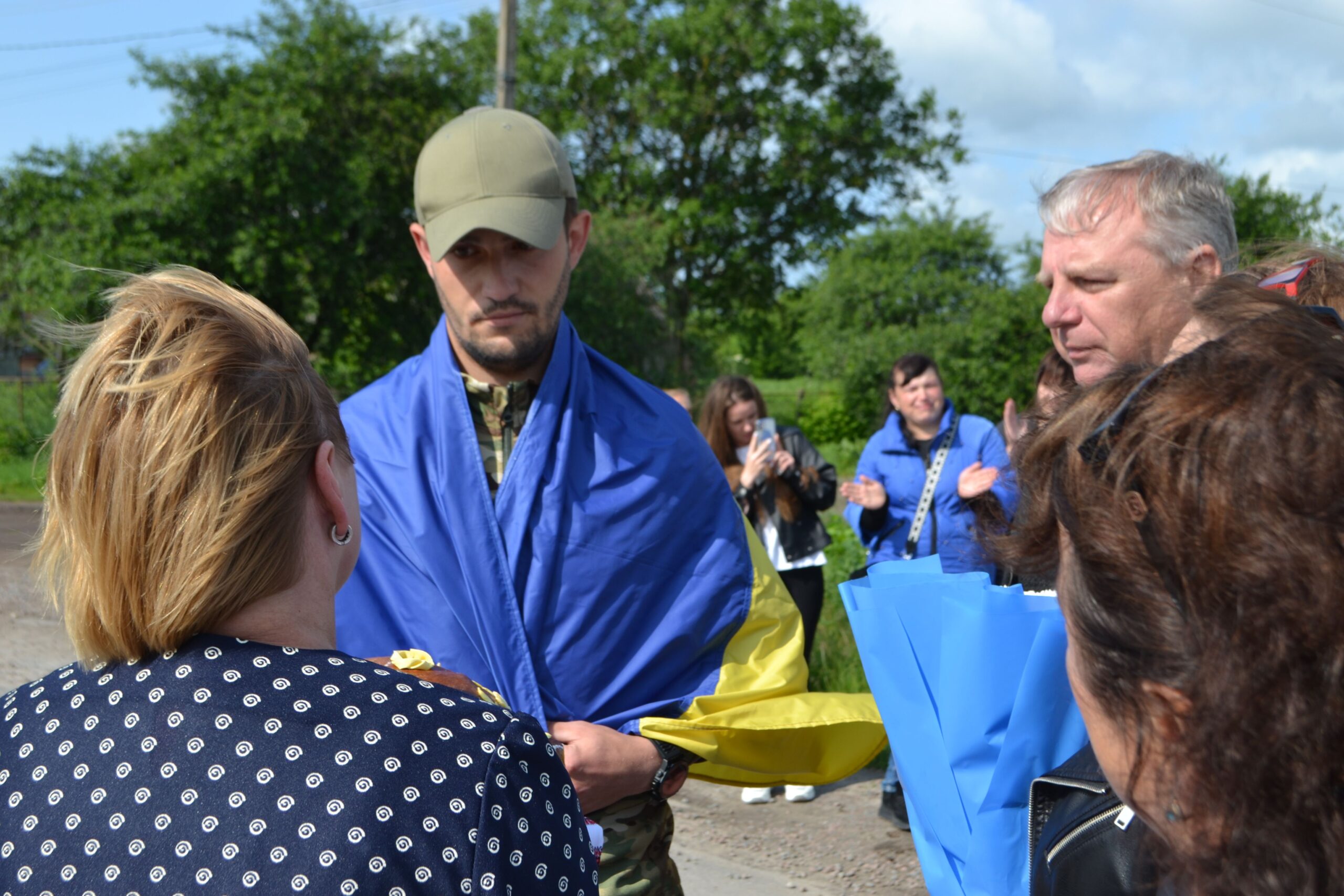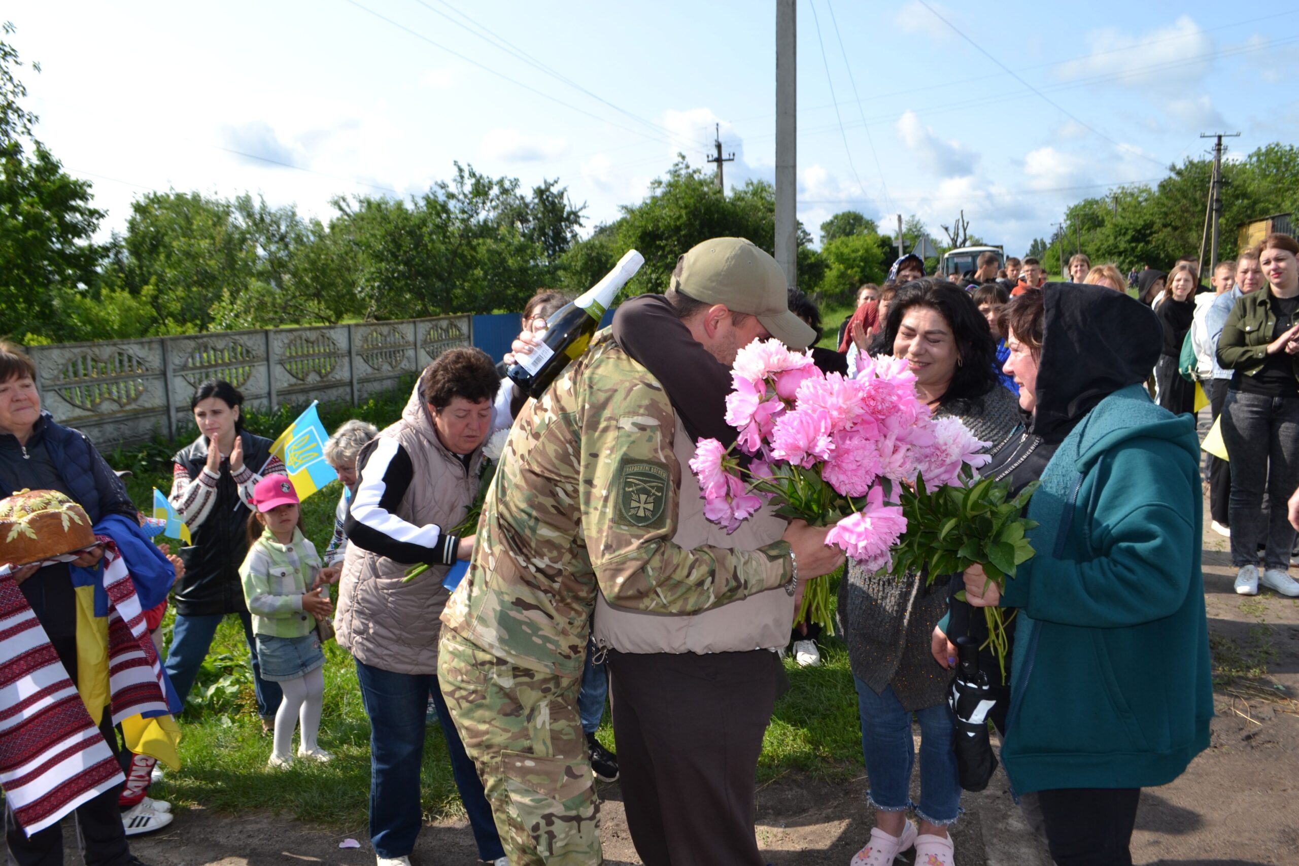 Зустріч у рідному селі стала справжнім символом єдності громади: рідні, сусіди, освітяни, гімназисти — усі разом утворили живий коридор біля дому Романа з прапорами, квітами, плакатами. Бердичівський міський голова Сергій Орлюк, староста Скраглівського старостинського округу Ольга Мельник, батьки Романа, дружина брата з маленьким сином, рідна тітка, бабуся та односельці — ніхто не стримував сліз, коли захисник вийшов з автівки і покрокував до земляків. В якийсь момент бійця не стало видно за букетами й обіймами. Люди скандували «Дякуємо» і вітали Романа на рідній землі.