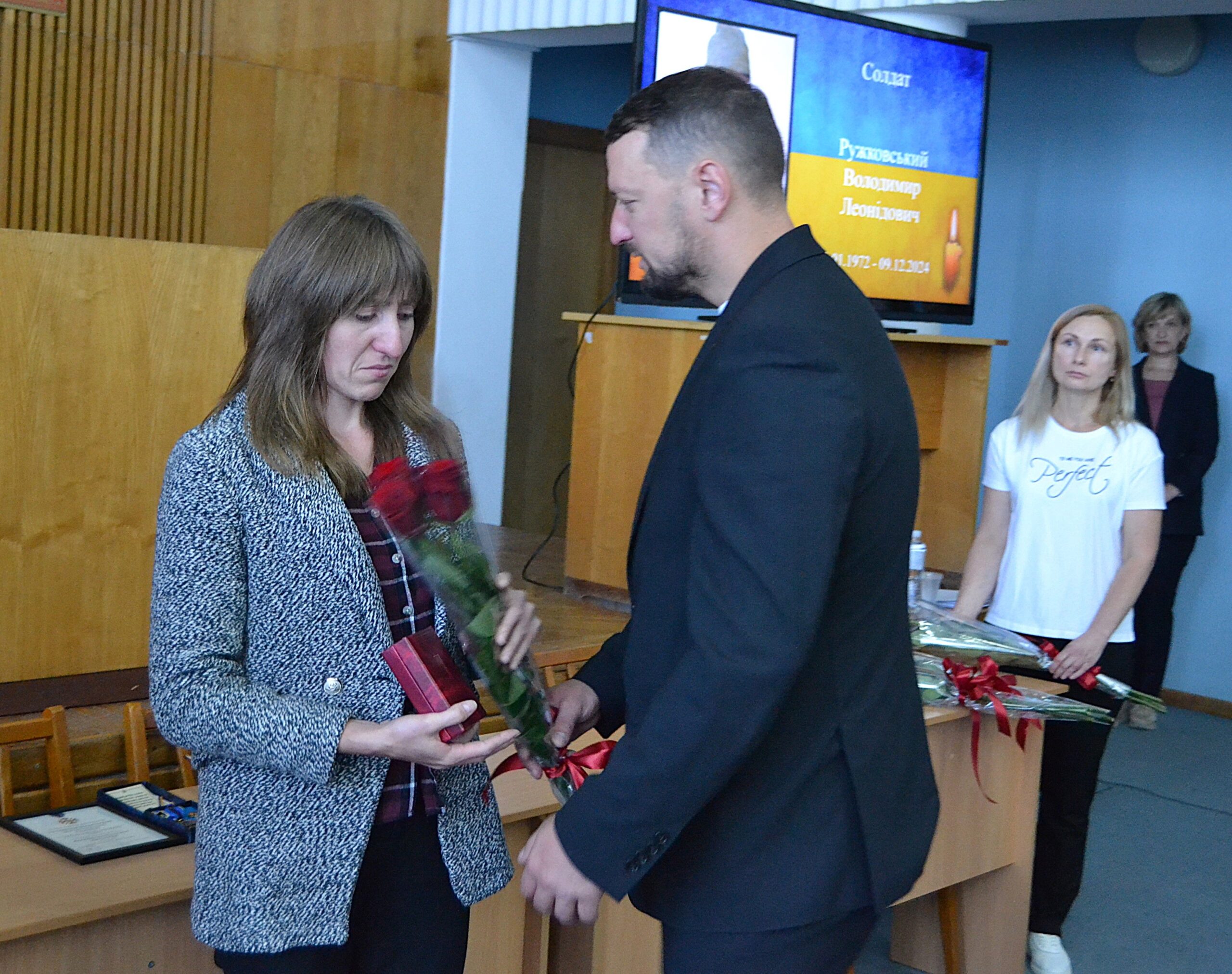 Сесія Бердичівської міської ради розпочалася із вшанування подвигів полеглих бердичівських Захисників та вручення нагород, якими їх було відзначено посмертно, членам сімей.