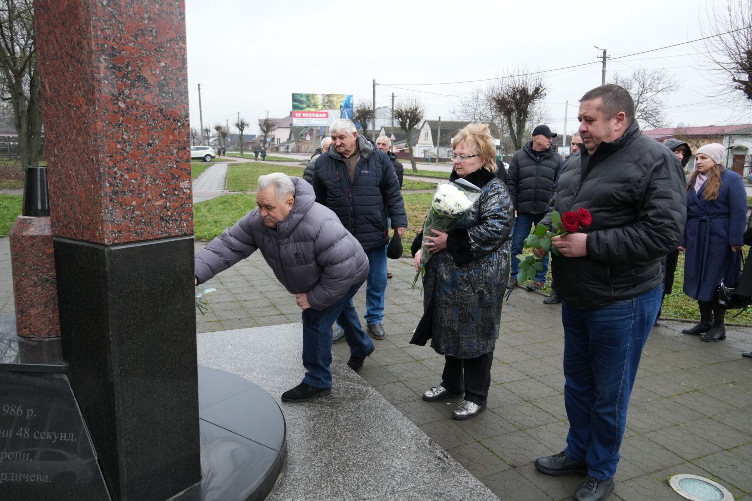 Вшанувати подвиг безстрашних борців з атомом для покладання квітів та висловлення глибокої шани до пам’ятної стели «Вони врятували світ» та пам’ятника загиблим при ліквідації наслідків аварії на ЧАЕС прибули заступниця Бердичівського міського голови Олена Петрівська, керуюча справами виконкому міської ради Лариса Котнюк, заступник начальника Бердичівської районної військової адміністрації Дмитро Ґедзь, представники Спілки ветеранів пожежної охорони МНС та ДСНС, фахівці міської ради, громадськість. Була виказана безмежна вдячність усім, хто ризикнув життям і власним здоров’ям заради збереження людської цивілізації.