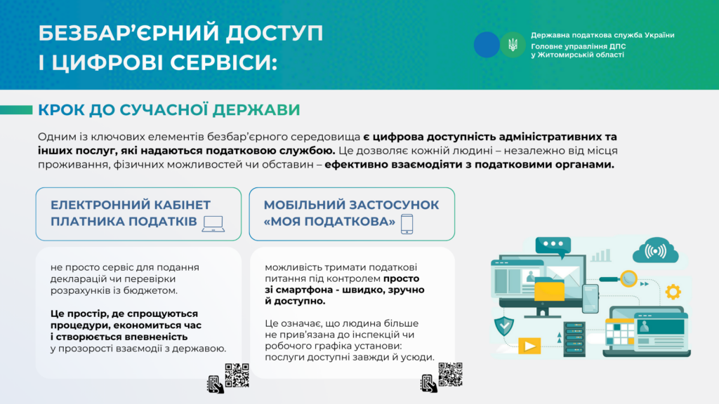 – Цифрову доступність: можливість отримати найпопулярніші послуги онлайн через Електронний кабінет – без відвідування податкових підрозділів.