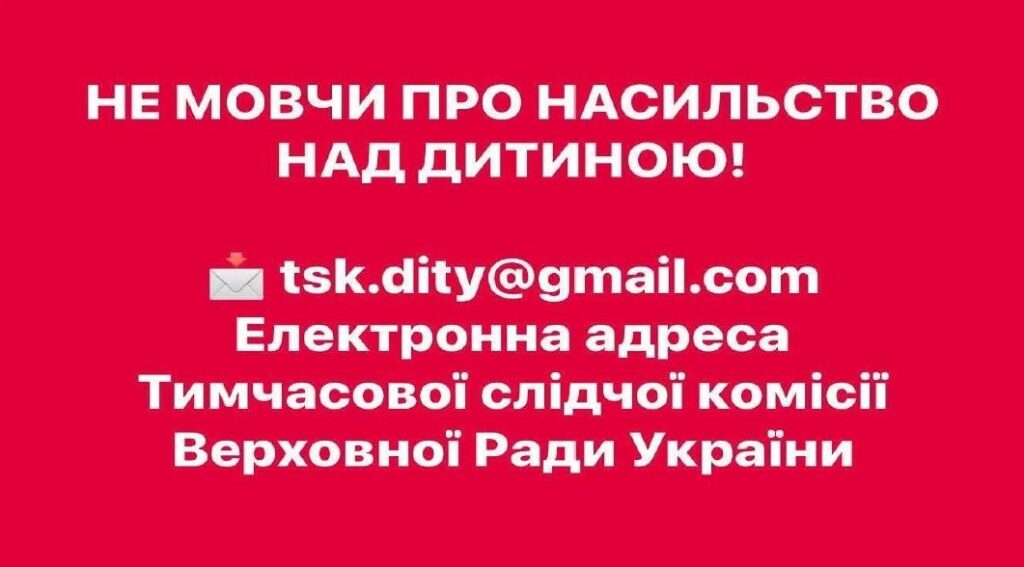 Повідомити про факти можливих порушень прав дітей можна, звернувшись до Тимчасової слідчої комісії Верховної Ради України, електронна адреса: tsk.dity@gmail.com, інформаційна сторінка за посиланням: https://www.facebook.com/share/1894c2X6V8/