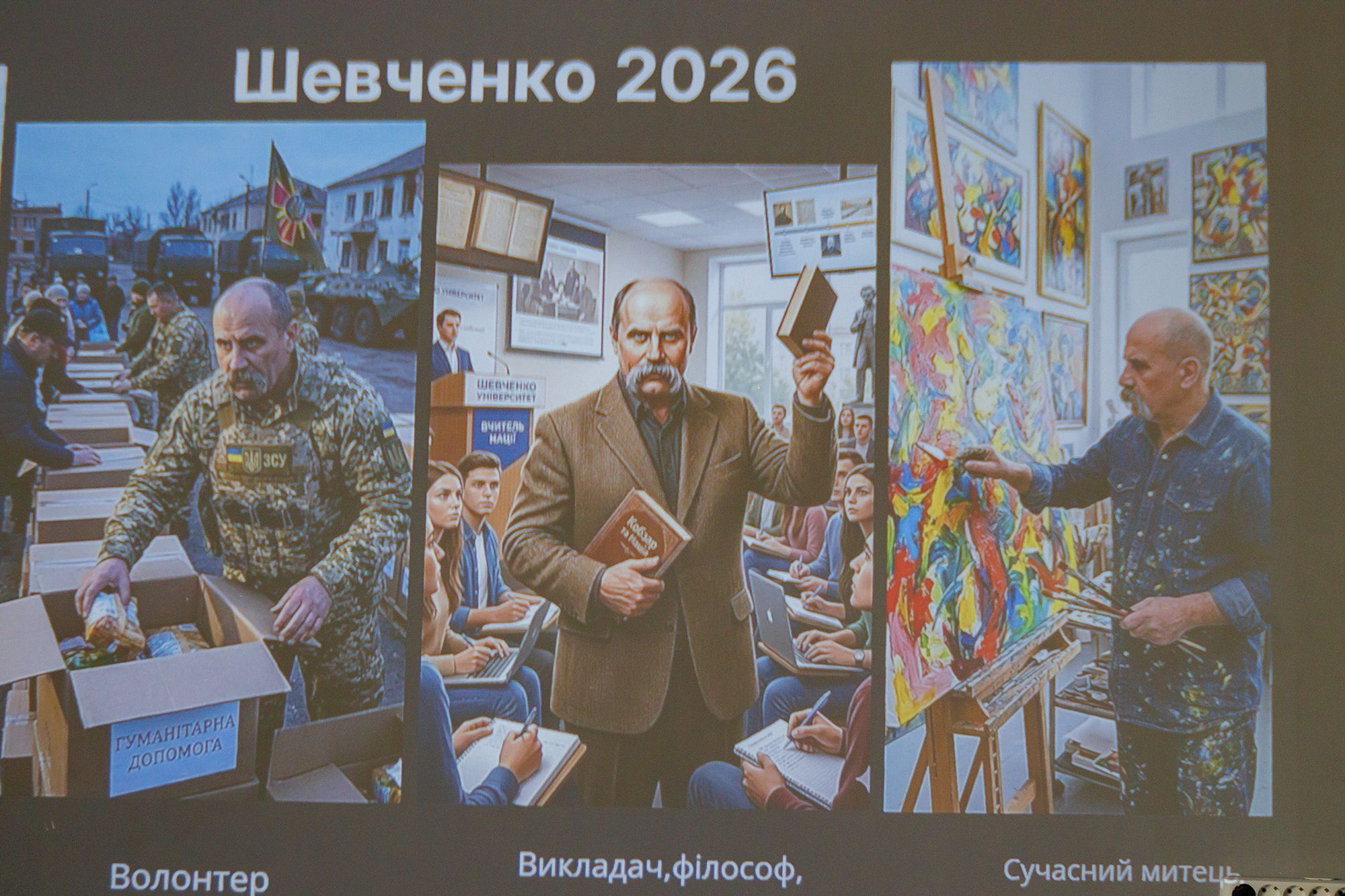 Стильний зухвалий молодик у модному плащі-макінтоші, фанат кави та душа компанії — таким насправді був за життя Тарас, а не похмурим кріпаком, констатувала молодь. Думка, яка червоною ниткою проходила крізь увесь захід: Тарас Шевченко, як і всі інші українські митці, був живою людиною зі своїм характером, смаками, почуттям гумору, злетами й падіннями, а не недосяжним каноном інтелектуальної еліти зі сторінок підручників. Члени Молодіжної ради за допомогою інструментів ШІ змоделювали, яким би міг бути митець сьогодні: що одягав, які заклади відвідував, який внесок у боротьбу робив тощо.