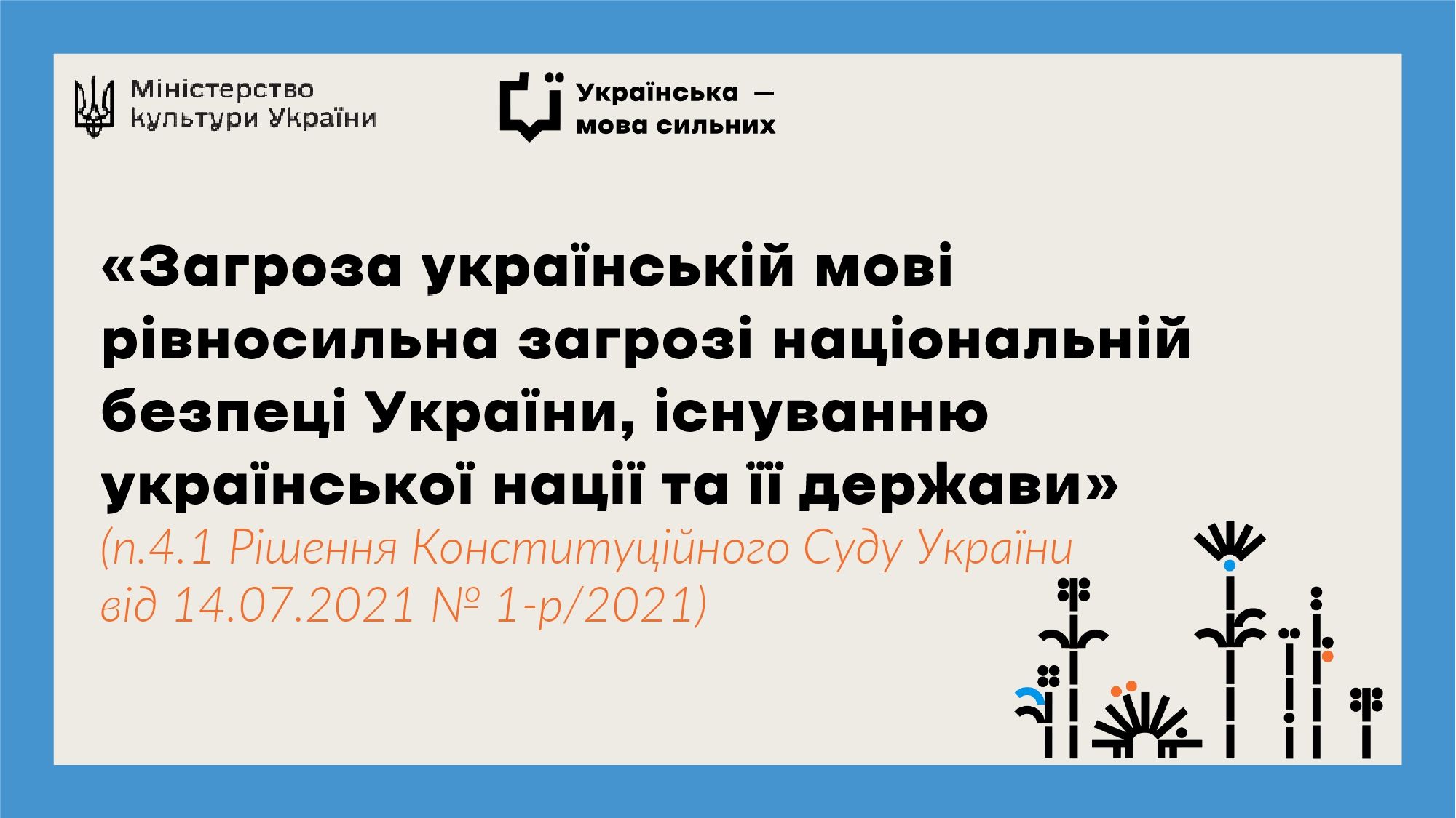 Стратегія популяризації української мови до 2030 року «Сильна мова – успішна держава» https://zakon.rada.gov.ua/laws/show/596-2019-%D1%80#Text;